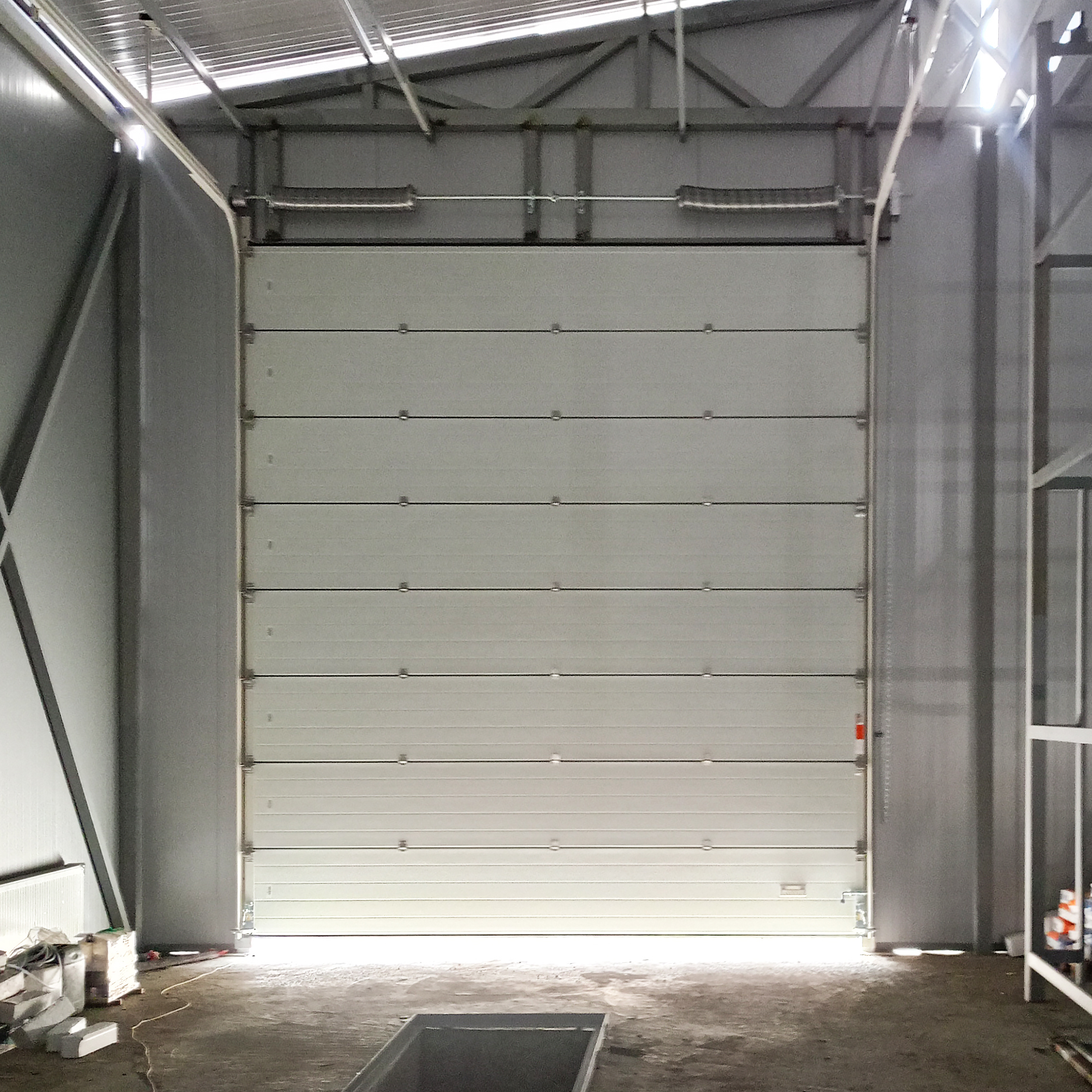 Ворота отличные. Установили некоторое время назад и никаких проблем. Работают тихо, надёжно. Секции складываются плавно, не скрипят. В общем, сделаны добротно. Для цеха - самое то. Рекомендую.